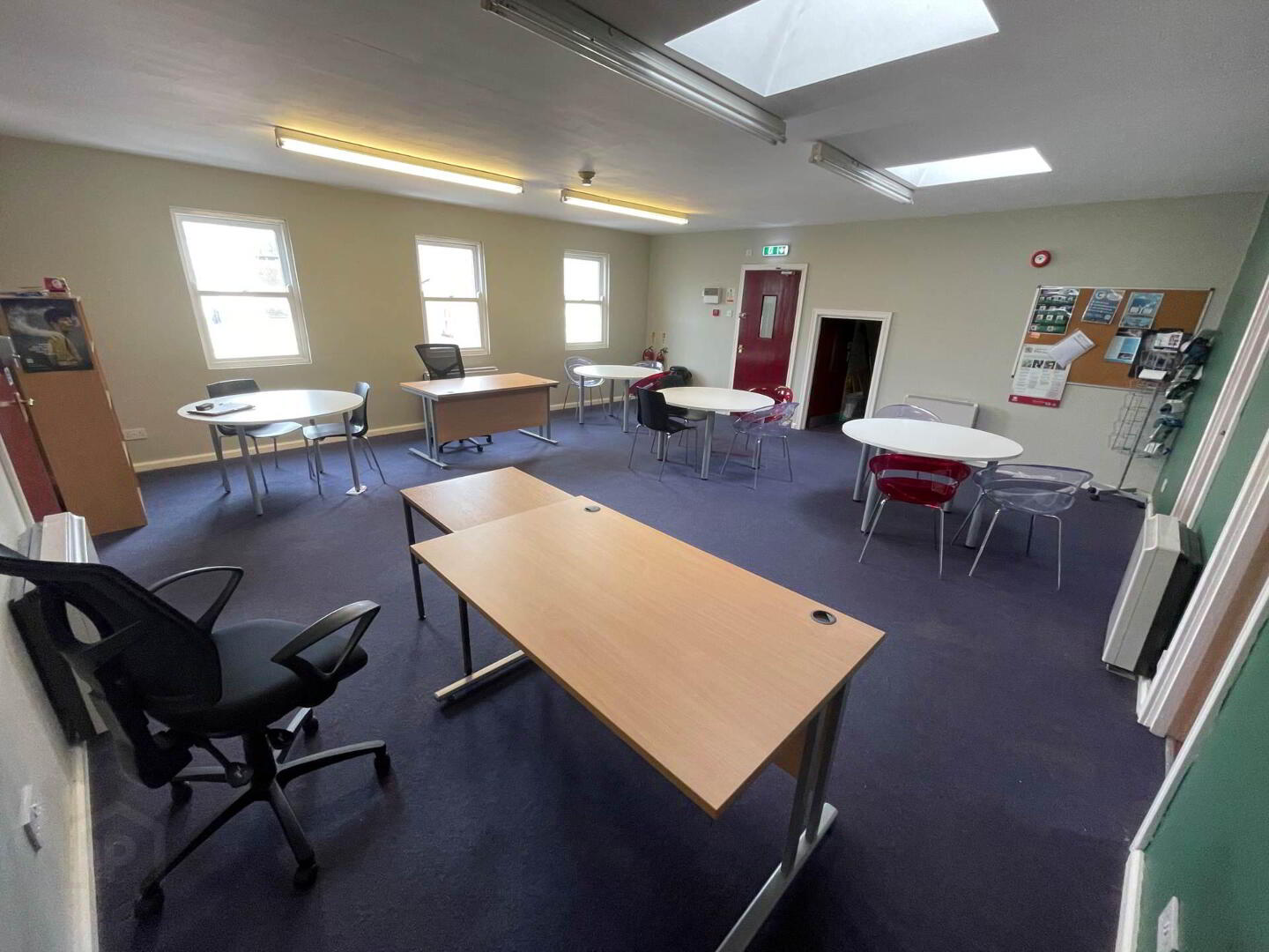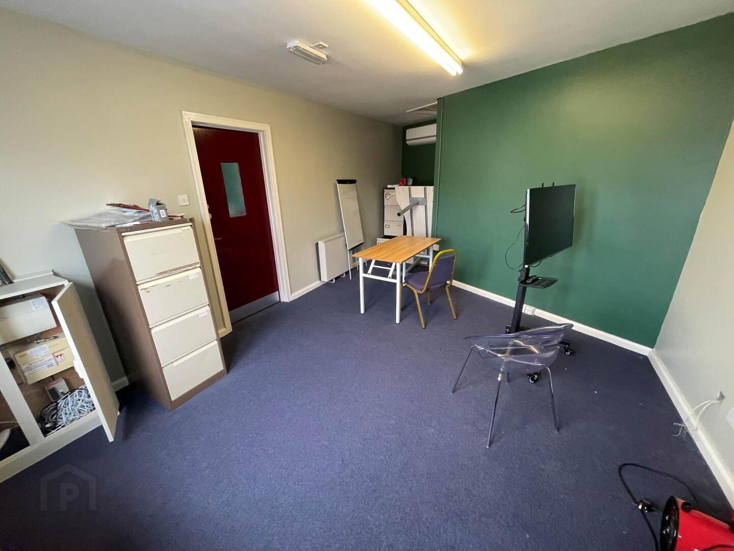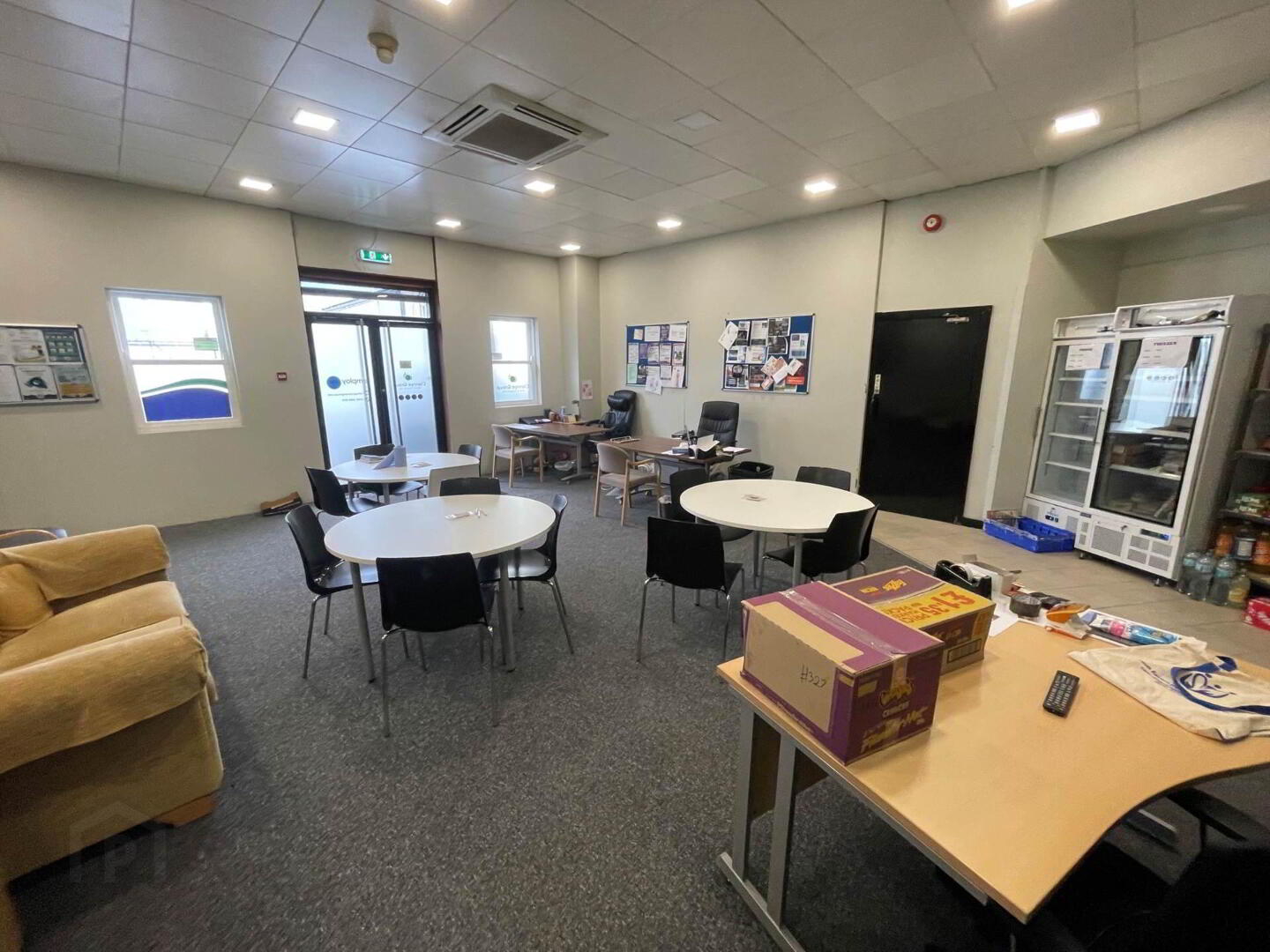 Spacious ground floor unit, suitable for a number of different businesses. Open plan space with lighting and heating. Private office area, Kitchen + WC.