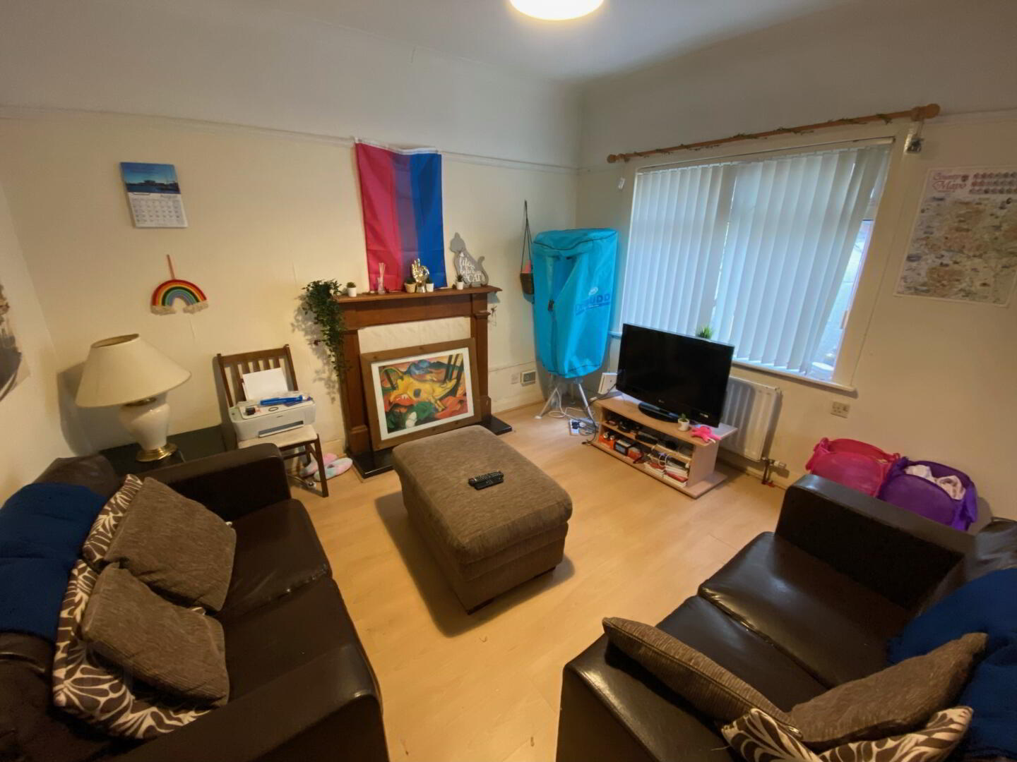 Bright and spacious lounge neutrally decorated and wood laminate flooring.