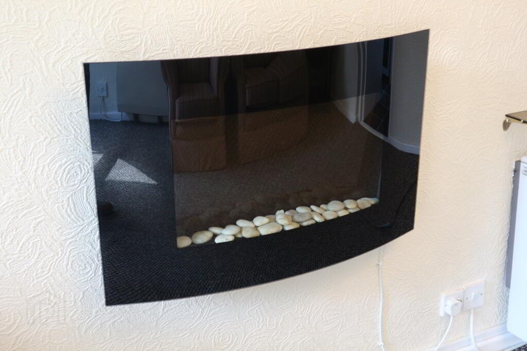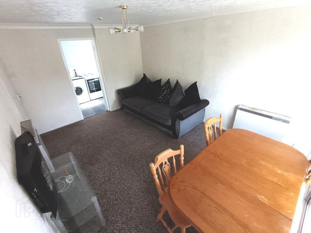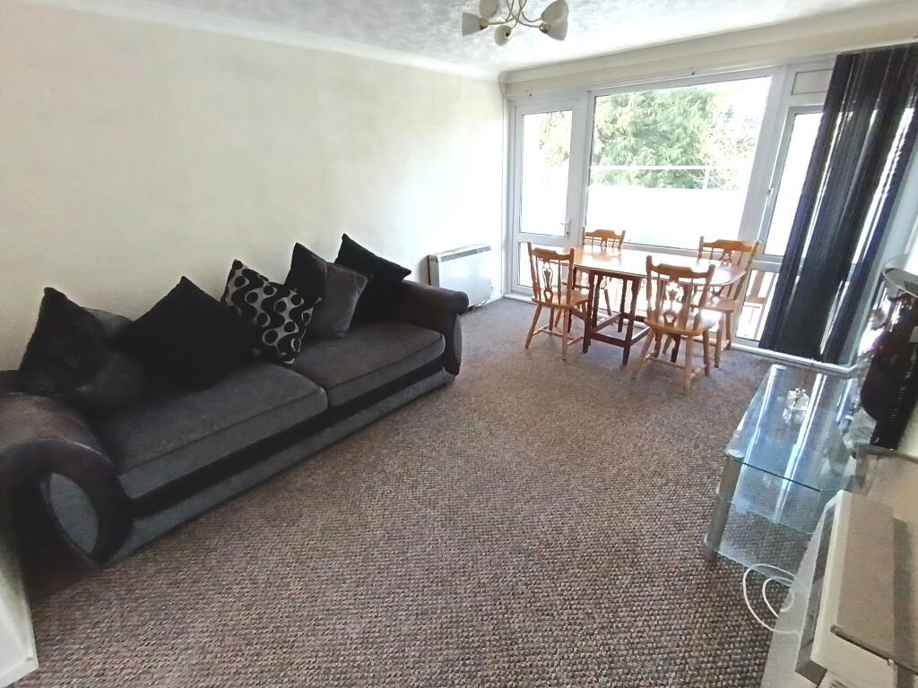 Bright and spacious living room neutrally decorated and carpeted, ample dining area. Feature wall mounted electric fire.