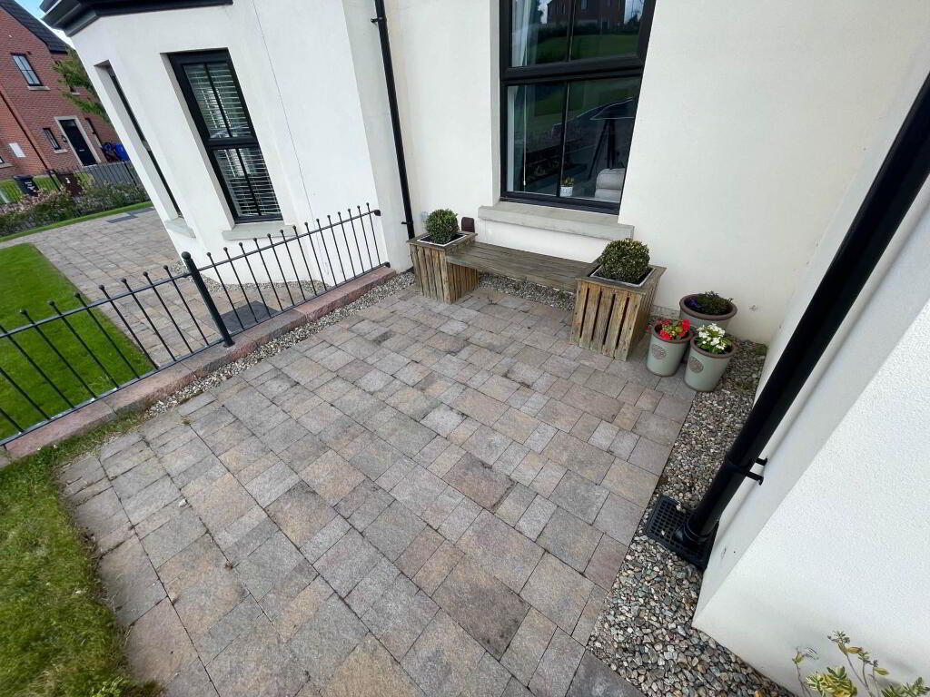 Exterior Front garden with lawn, brick paving and tarmac drive providing off street parking Garden Shed