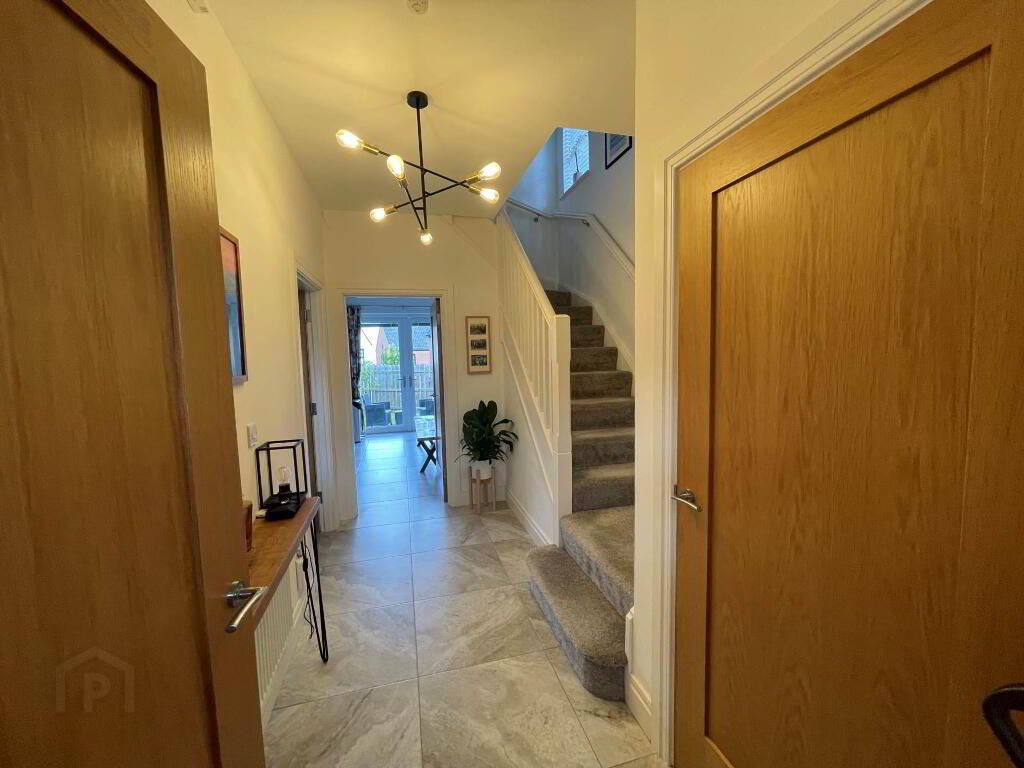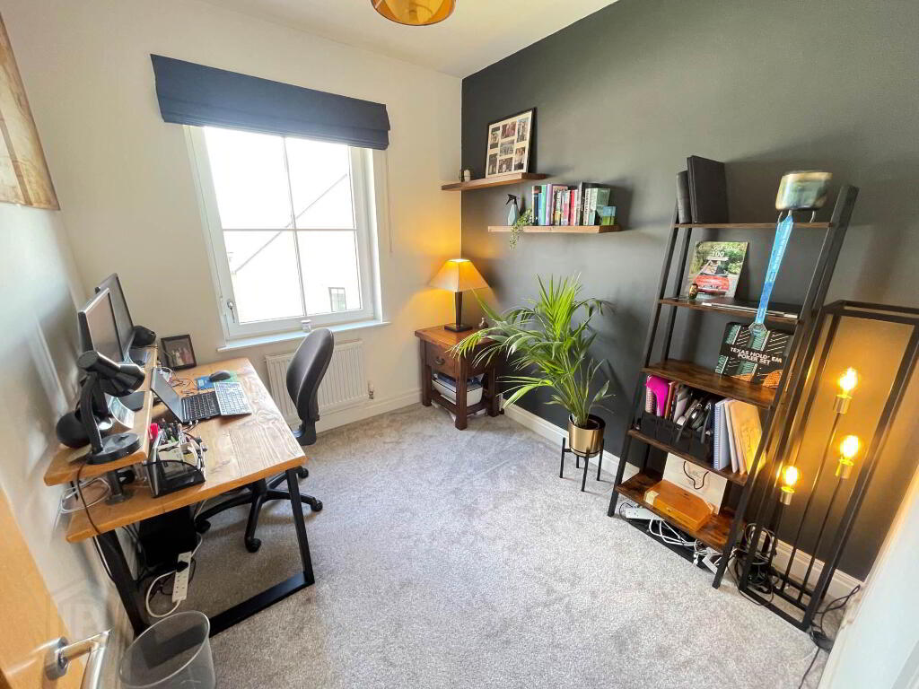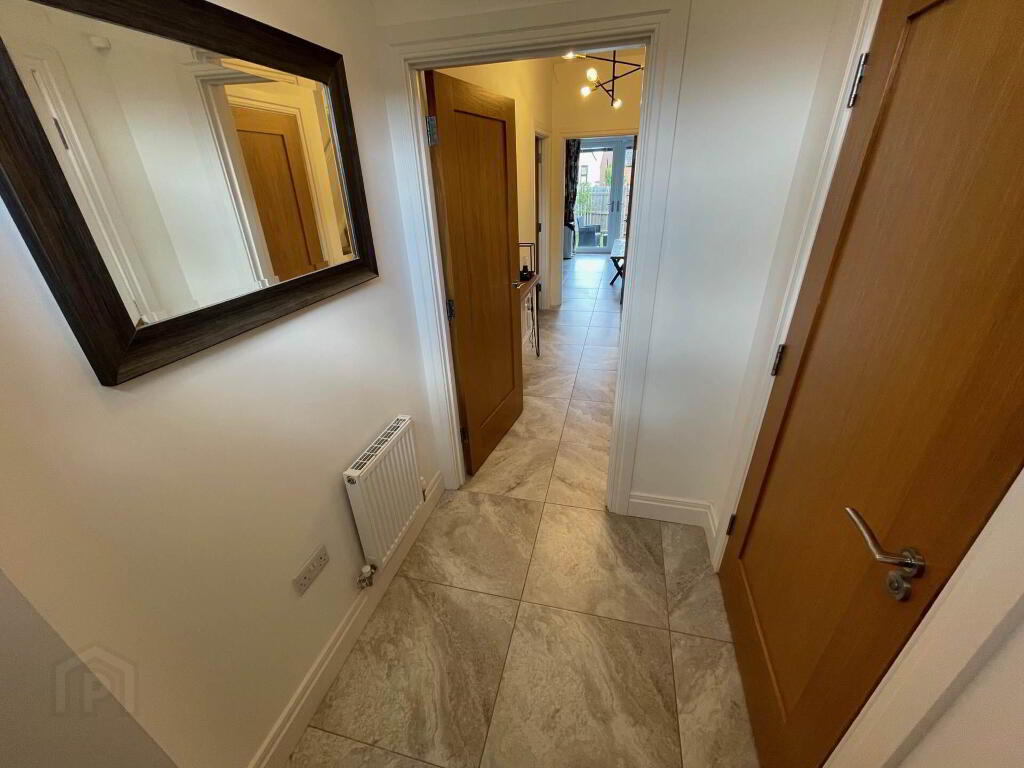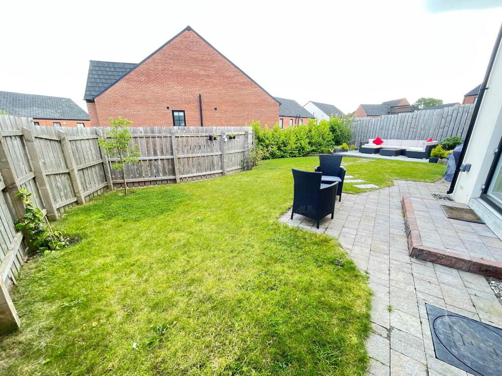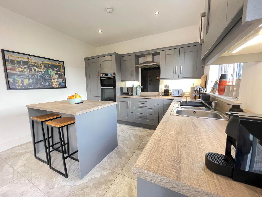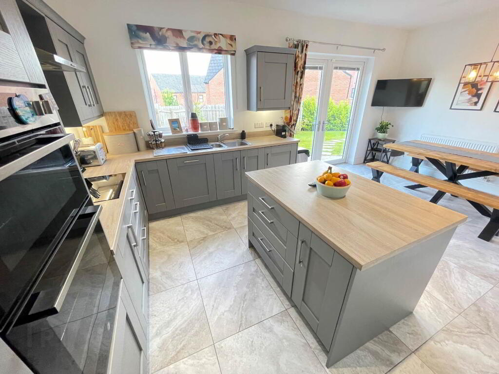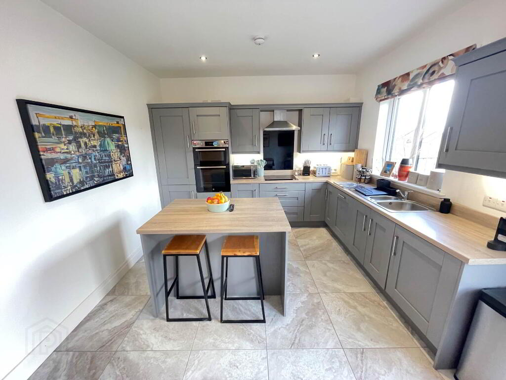 The property is presented to a high standard throughout and consists of a good sized lounge with feature electric fire and built in recess for wall mounted TV. The spacious modern kitchen with island also comes with integrated appliances including dishwasher, and there is ample dining space.