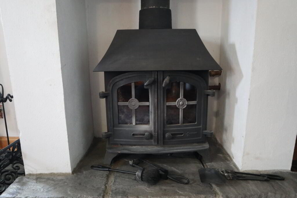 Dual aspect lounge with feature multi fuel stove. Tile flooring.