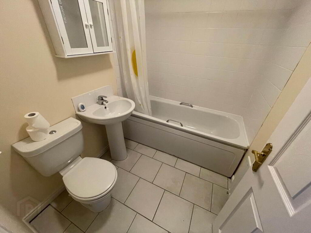 Bathroom - 5'8" (1.73m) x 6'9" (2.06m) White suite to include panelled bath with mixer shower over, low flush toilet wash hand basin with mixer tap. Part tiled walls and tiled floor.