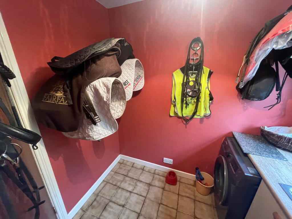 Key outdoor facilities include: approximately 9 acres of land including around 3/4 acre of woodland, well laid out in manageable fields, each with individual water supply. A stable block serviced with electricity and water, offering excellent equestrian or livestock potential, a floodlit sand school, ideal for year-round horse training or exercise. A spacious yard with ample turning and parking space. Large barns offering extensive space for livestock, workshop potential, or further development (subject to permissions).