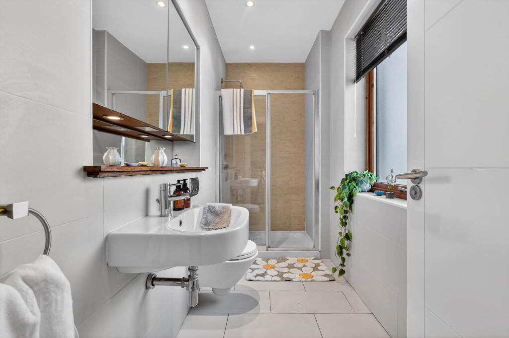The accommodation includes three generous double bedrooms, all with built-in wardrobes. The Principle bedroom benefits from a contemporary ensuite shower room. Bedroom 2 benefits from a walk-in wardrobe, ensuite shower room and balcony. Family white bathroom suite.