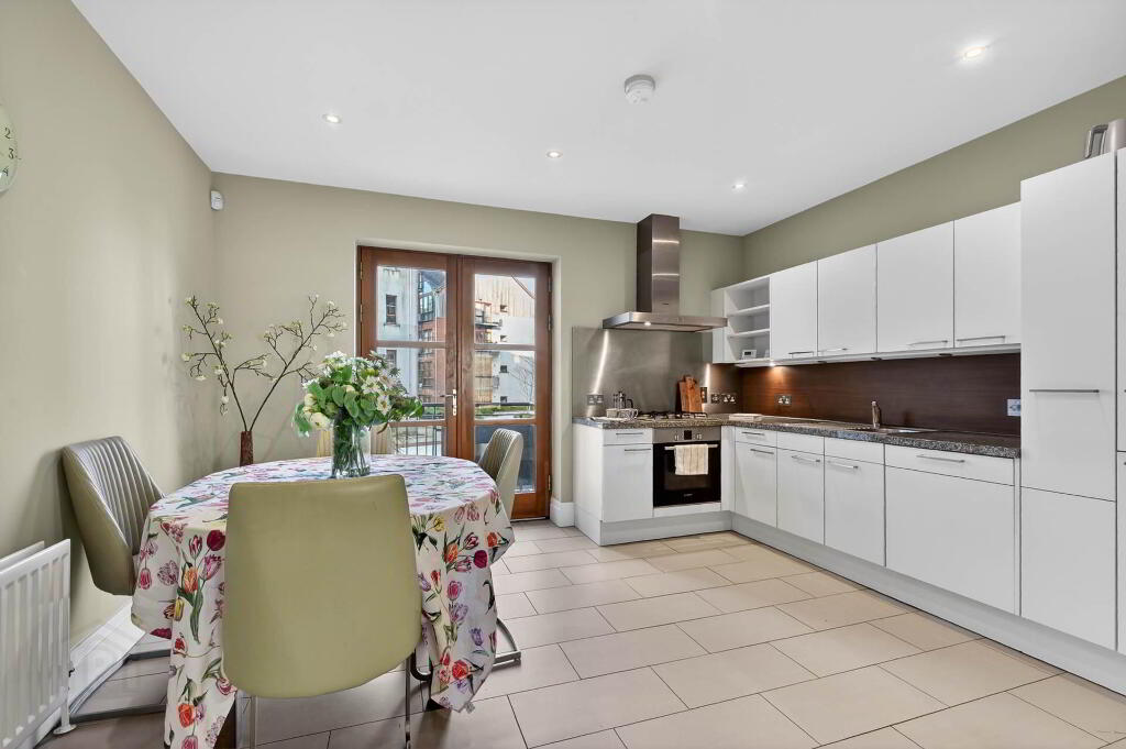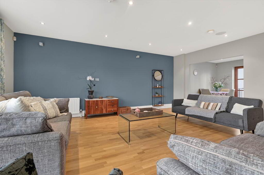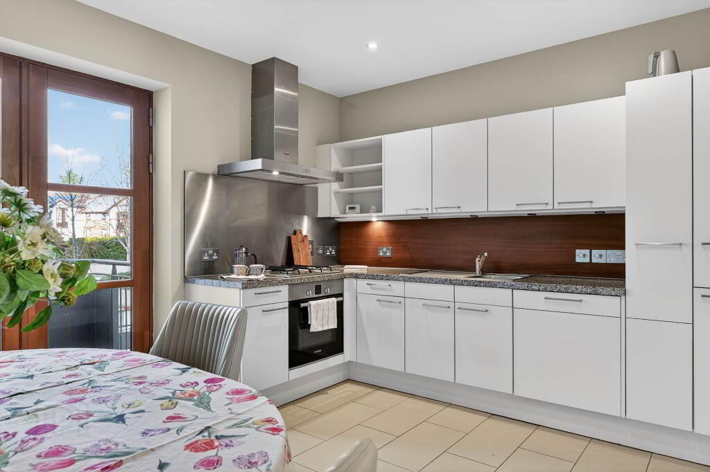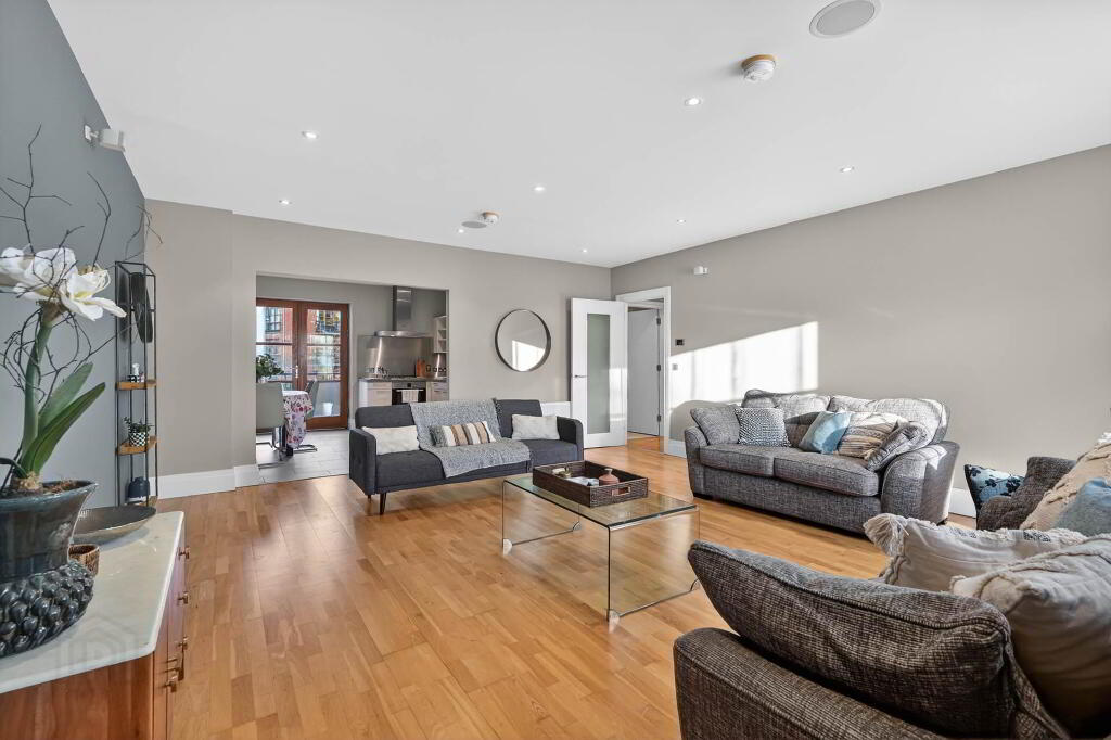 Bright and spacious first floor apartment extending to over 1400 sq ft, featuring an impressive open-plan living and dining area with access to a private balcony`s front and rear, alongside a fully fitted kitchen complete with integrated appliances.