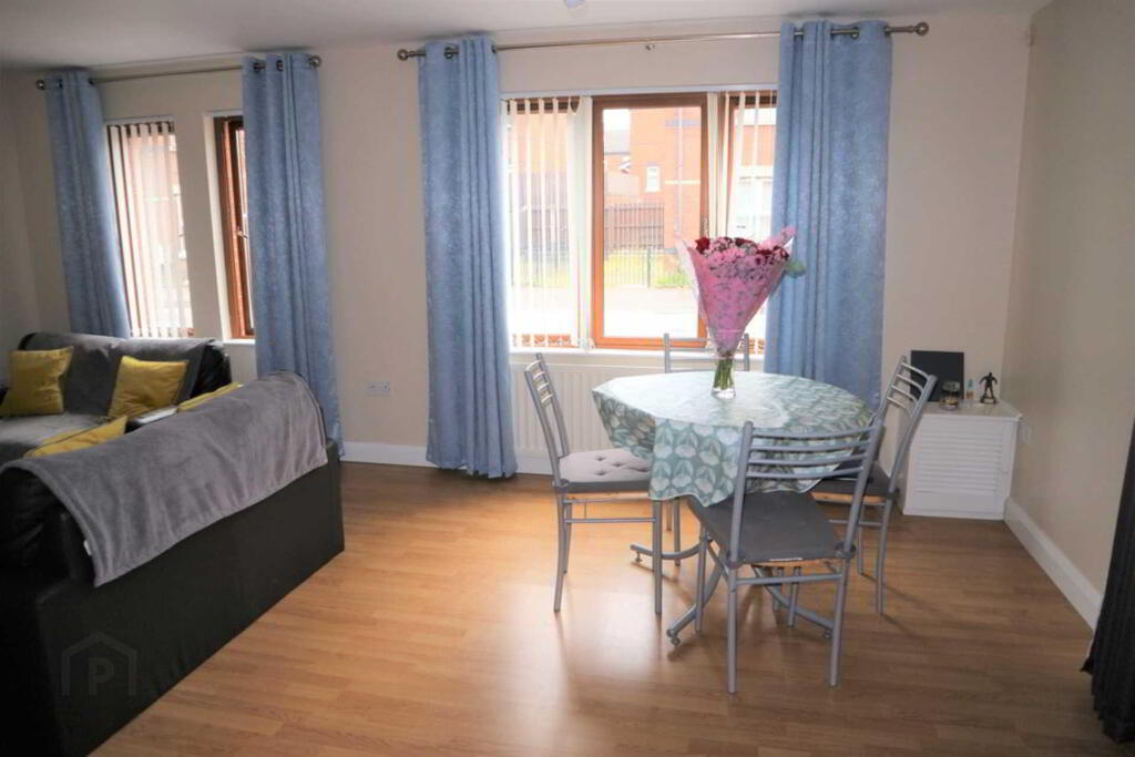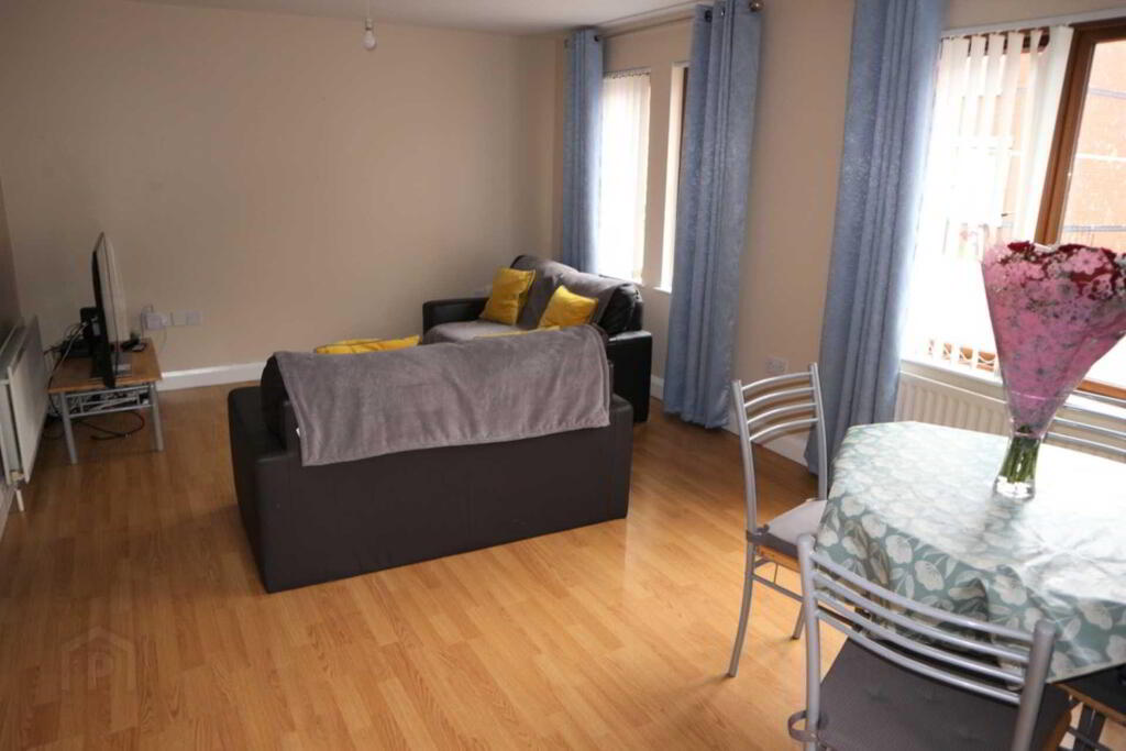 Accommodation comprises; Large spacious lounge/dining area open plan to kitchen. Neutrally decorated & laminate flooring. Modern Kitchen with built-in gas hob, electric oven & extractor fan. Part tiled walls and vinyl flooring. Bathroom with a shower cubicle with thermostatic shower. Part tiled walls. Wood effect vinyl flooring. Bedroom (1) Double with slide-robes. Laminate flooring. (2) Slide-robes. Laminate flooring. Part furnished. Gas fired central heating. Secure parking.