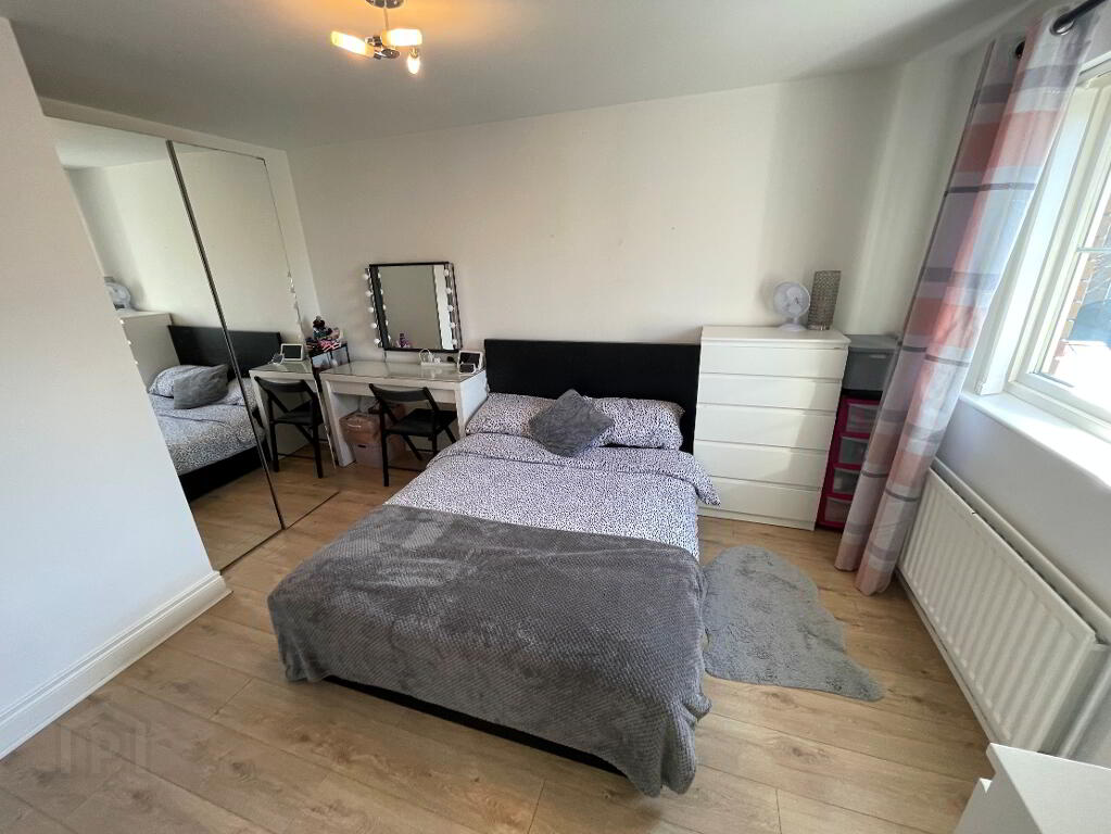 Neutrally decorated with wood laminate flooring, ensuite shower room with WHB and low flush WC.