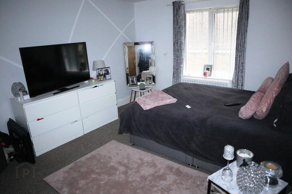 Spacious double bedroom neutrally decorated and carpet flooring.